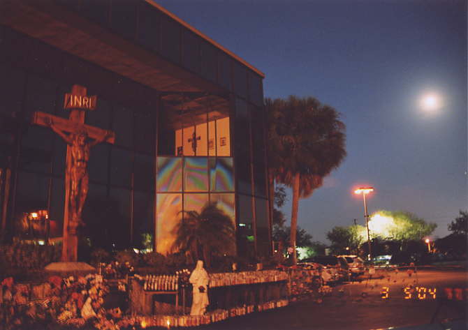 The corner fell off at Our Lady of the Holy Spirit Center.