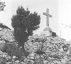huge, concrete cross atop Mt. Krizevac, at Medjugorge.