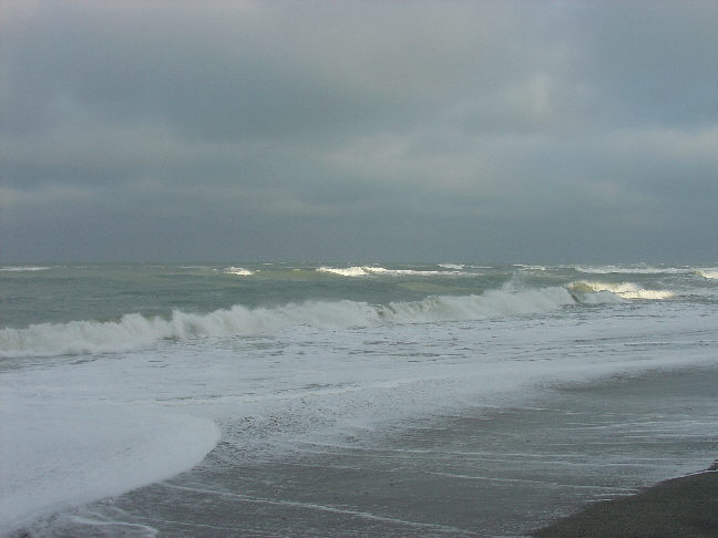 Do you see a little child near the vast ocean