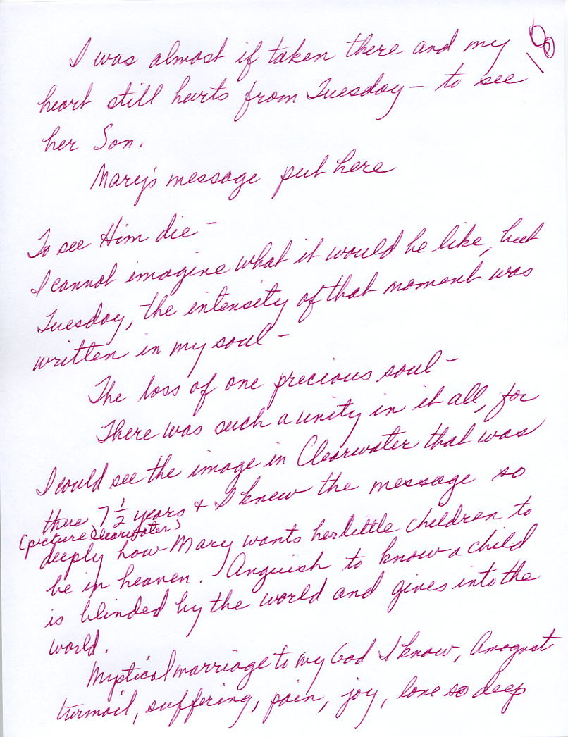 Mary:  I stood beneath the cross of my Son, and my Heart was in such pain for I saw Him before my eyes. I saw Him covered with blood. I saw Him die. My Heart, my children, my Heart to watch my Son, but my Heart, my Heart, how I suffered for my little children of the world that give in to this world and give up the love of my Son. O my little children of light, I give you this message. Carry this light into the darkness for your Mother Mary, for I stood beneath the cross and I cried. I cried for the little ones. I cried for the young ones, the ones that do not care and will lose their souls. How do I make you see for you will not listen to me? What can I do? I come. I appear. I beg. I plead. I give you these gifts from my Son, and you reject me. I do not deliver messages very often anymore for I have been ignored. The message is the same. You do not read the messages I have given to you. Please help me. Help the little children. I appear. I appear. I appear, and I am ignored. I stood beneath the cross, and I cried. I cried, and my Heart was in such anguish for my little children, for I am searching for them this day as I searched for the Child Jesus. Please, please help me. I cannot hold back the hand of my Son any longer. I am Mary, your Mother. I ask you to help my children. You are my children of light.
