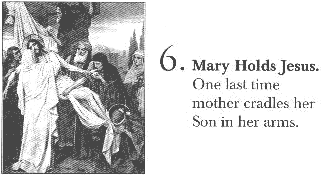 (6) The sixth sorrow: Jesus is taken down from the cross and laid in Mary's arms (Hail Mary).
