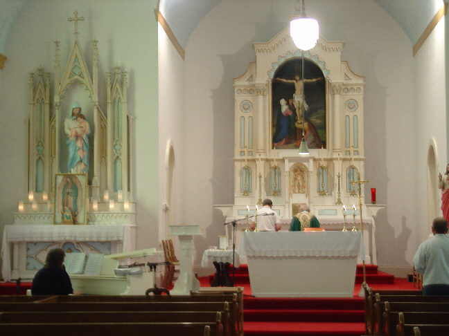 Messenger: I am Rita Ring and this is the message that I have been asked to deliver here tonight. We pray for the sinkhole and the repairs that are going on. Right under the image there's a sinkhole. And so they are digging up all around there and then we are going to put that protective glass in there in front of Jesus' face. We'd like to see Mary again but after somebody knocked off her head, I don't know if God will ever put Mary back there. I had a thought that maybe He'd put her on the other side window, opposite that one, but it never happened. Anyway we can hope and be grateful for what we have and sing